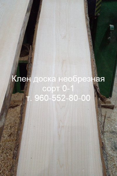 | Доска Клен необрезная толщина 50мм. сорт 0-1 |