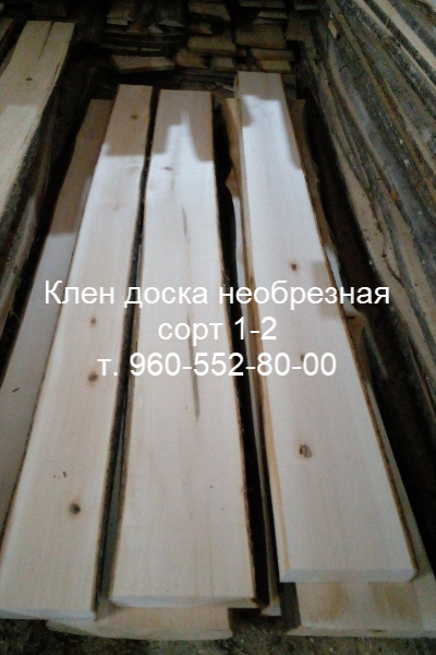 | Доска Клен необрезная толщина 50мм. сорт 1-2 |